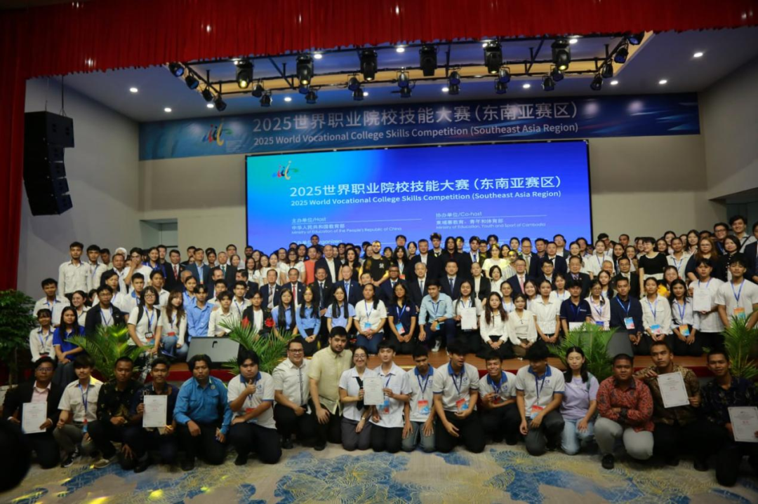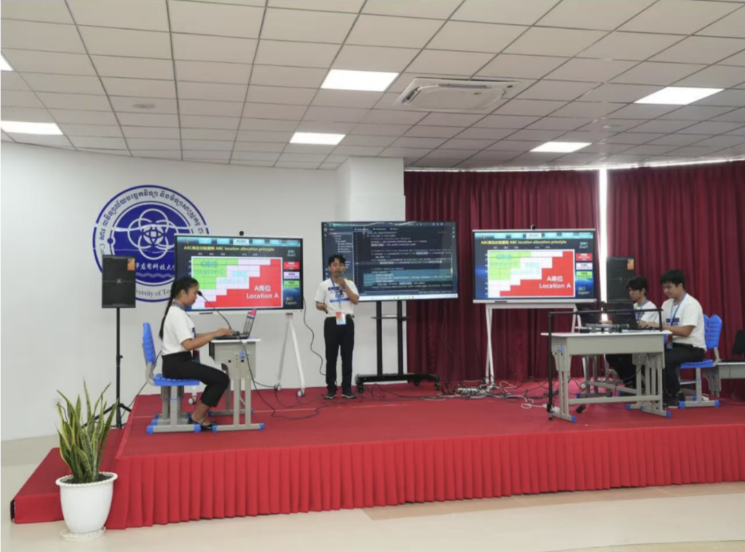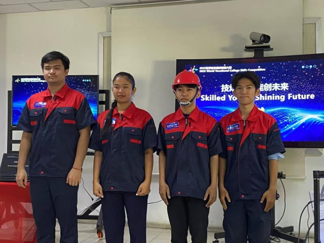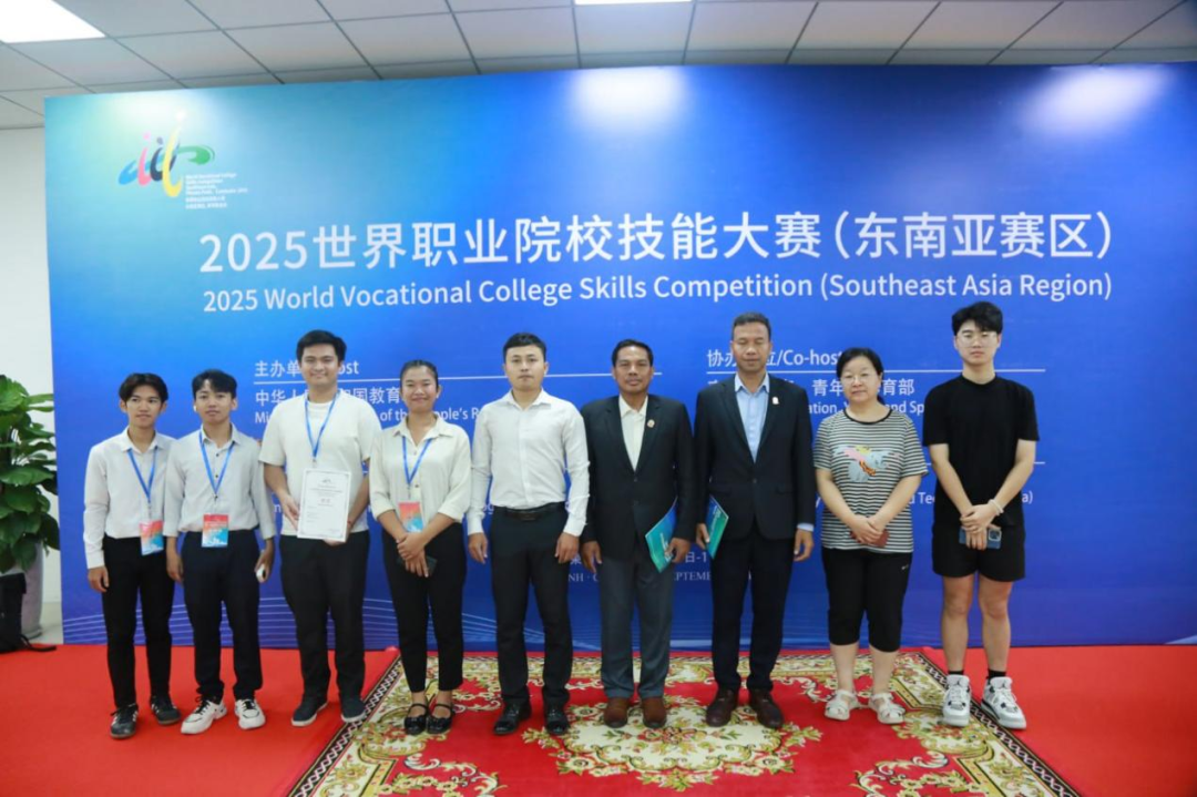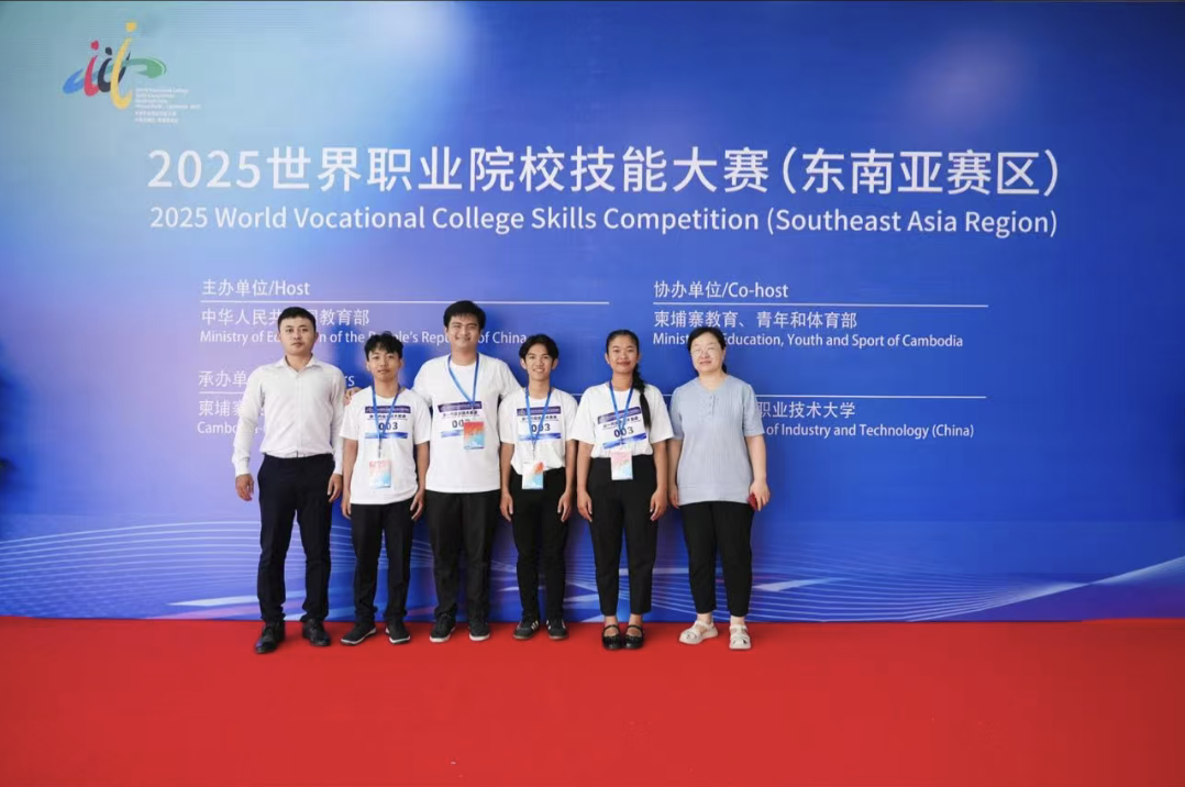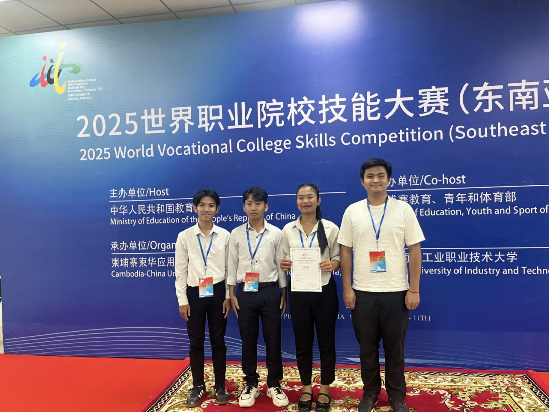 2025年9月9日-12日,2025年世界职业院校技能大赛国际线下组东南亚赛区“新一代信息技术”赛道在柬埔寨首都金边举行。来自东南亚各国的二十余支代表队参赛,我校信息工程学院宗月萍老师指导的柬埔寨亚欧大学四名学生Hor Hongly、Leng Chhangleang、Pak Menghieng、Rim Makara凭借出色的综合表现,成绩排名全场第三,斩获银奖!为学校争得了荣誉,也为中国职业教育在国际舞台上增添了亮丽的一笔。