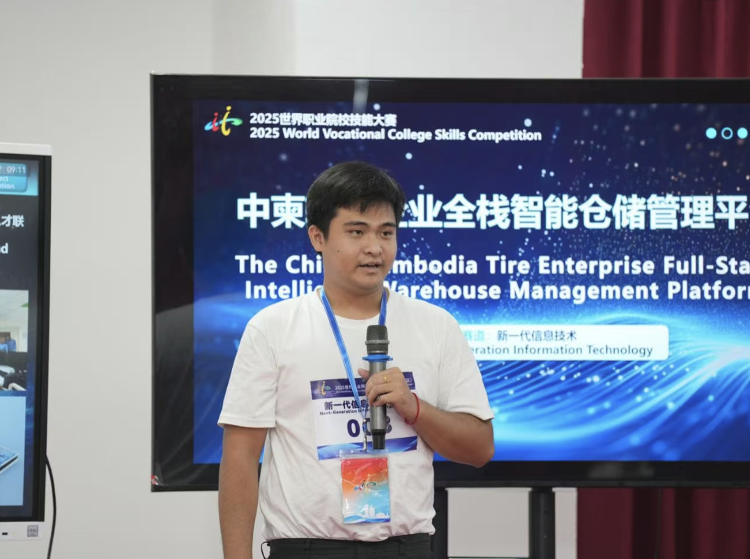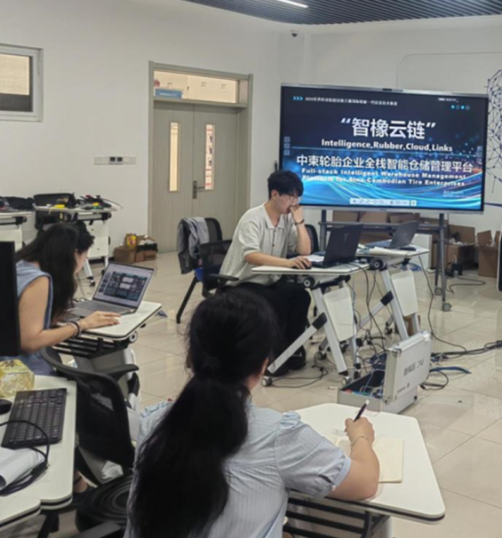 自今年4月世界职业院校技能大赛国际线下赛道启动伊始,我校迅即行动,第一时间组建了以信息工程学院为核心的世赛攻坚团队。团队与柬埔寨亚欧大学展开深度合作,柬方师生深入当地轮胎制造企业一线,精准识别出仓储管理中的痛点,基于柬方企业真实需求,我校团队充分发挥在计算机视觉、物联网传感和智能调度算法等领域的技术优势,最终研发出直击行业痛点的参赛项目——《中柬轮胎企业全栈智能仓储管理平台》,以一整套智慧仓储解决方案,展现了强烈的实践导向与应用价值。指导教师宗月萍与学生李佳霖怀着为校争光、为中国职业教育赢得国际认可的坚定信念,毅然投入高强度、高标准的备赛工作中。数月以来,团队多次召开线上国际会议,对项目进行逐帧解析,对实施方案进行多轮迭代优化;面对赛制变动与技术挑战,师生们携手攻坚,在一次次尝试与挫折中调整策略、重构系统。在远赴柬埔寨开展实地辅导期间,身处陌生国度,他们不仅要应对语言沟通的障碍、酷热气候与饮食差异,更需在有限条件下模拟赛场环境,进行高强度训练。从算法优化到设备调试,从心理疏导到国际礼仪,每一个细节都历经百般锤炼。他们用近乎执着的坚持,将职业教育的使命转化为跨越山海、不畏艰难的实际行动,彰显了我校教师的专业精神与国际担当。