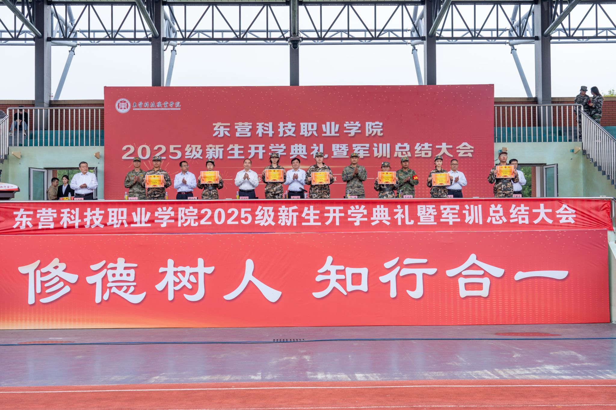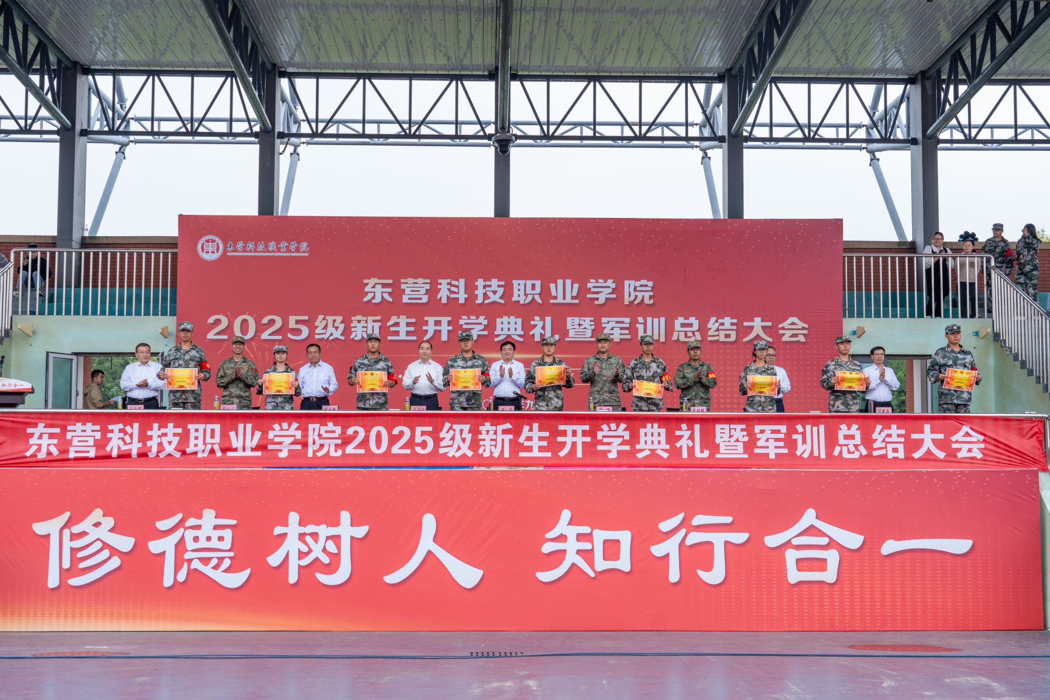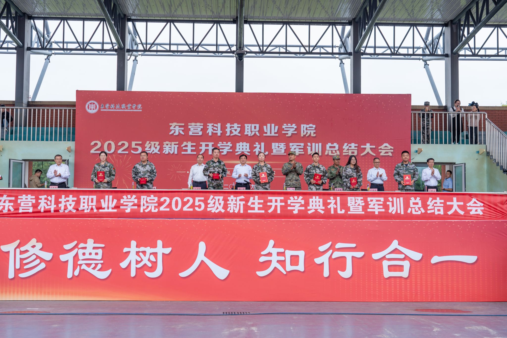 会上,学校党委委员、副校长徐兴习宣读了《东营科技职业学院关于表扬2025级新生军训先进集体和先进个人的决定》;与会领导为受表扬的单位和个人颁奖;成永江校长为广饶县人民武装部授予锦旗;2025级新生代表、2024级学生代表、教师代表依次上台作了发言。