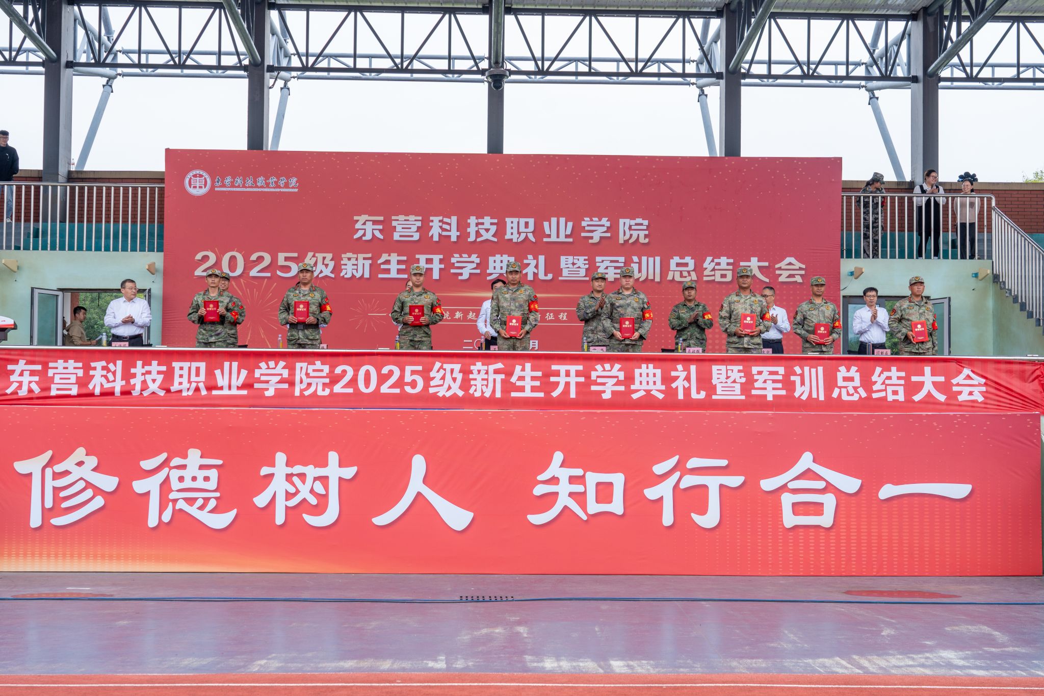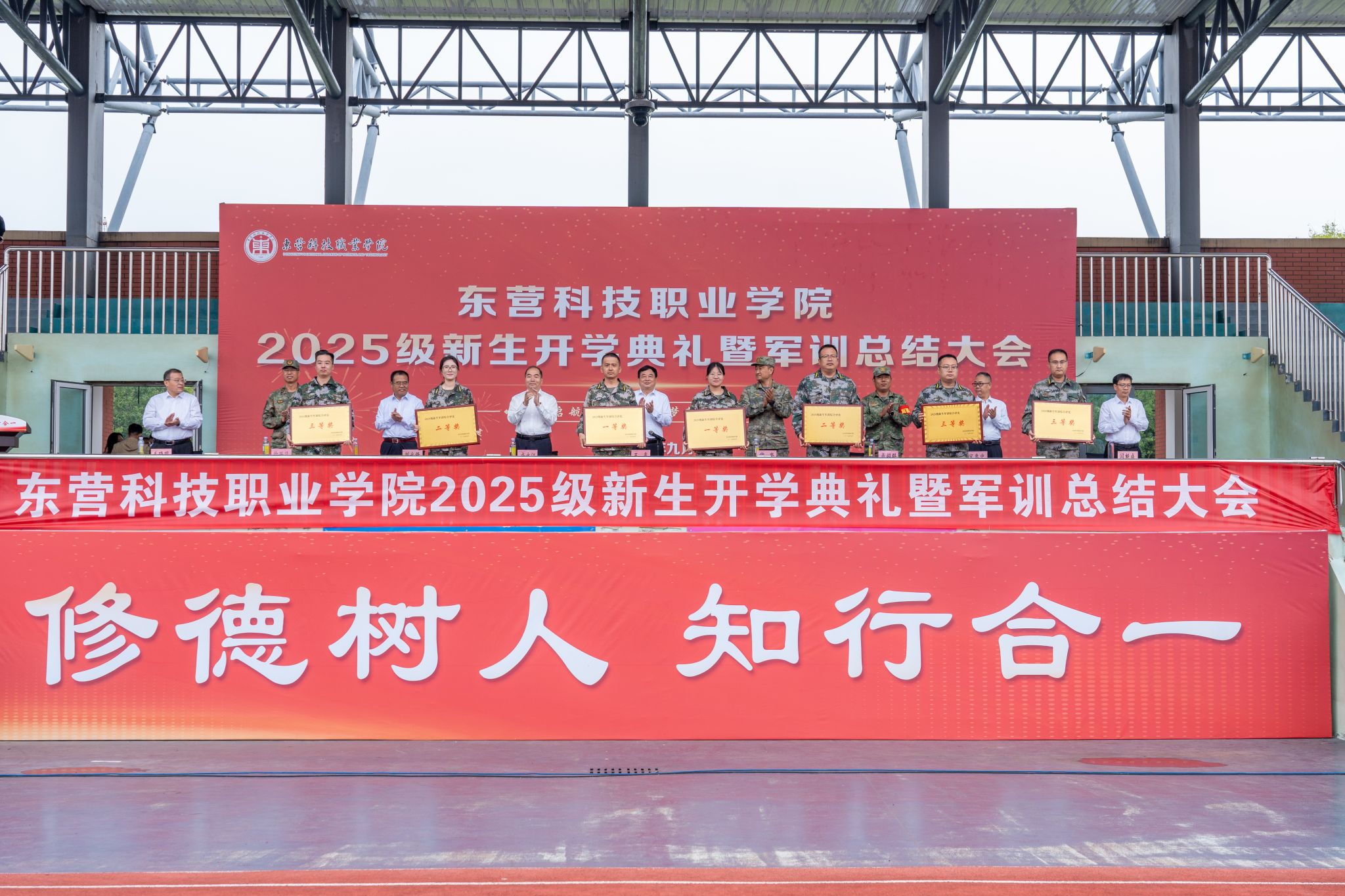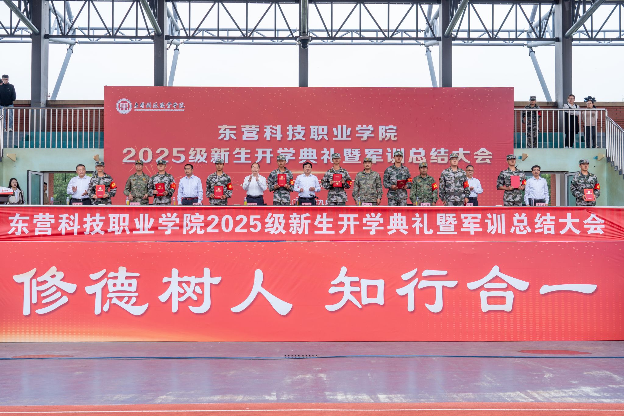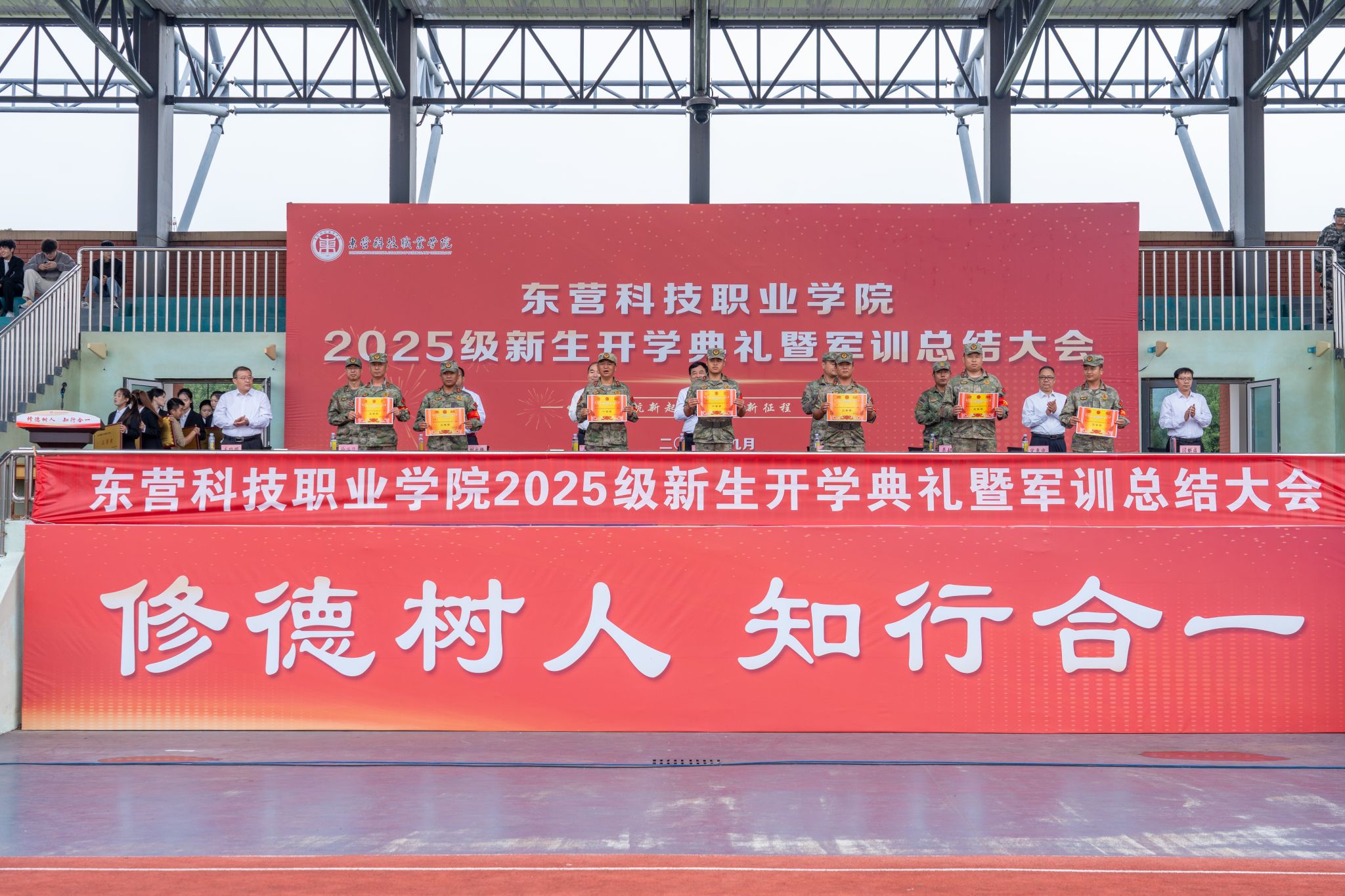 会上,学校党委委员、副校长徐兴习宣读了《东营科技职业学院关于表扬2025级新生军训先进集体和先进个人的决定》;与会领导为受表扬的单位和个人颁奖;成永江校长为广饶县人民武装部授予锦旗;2025级新生代表、2024级学生代表、教师代表依次上台作了发言。