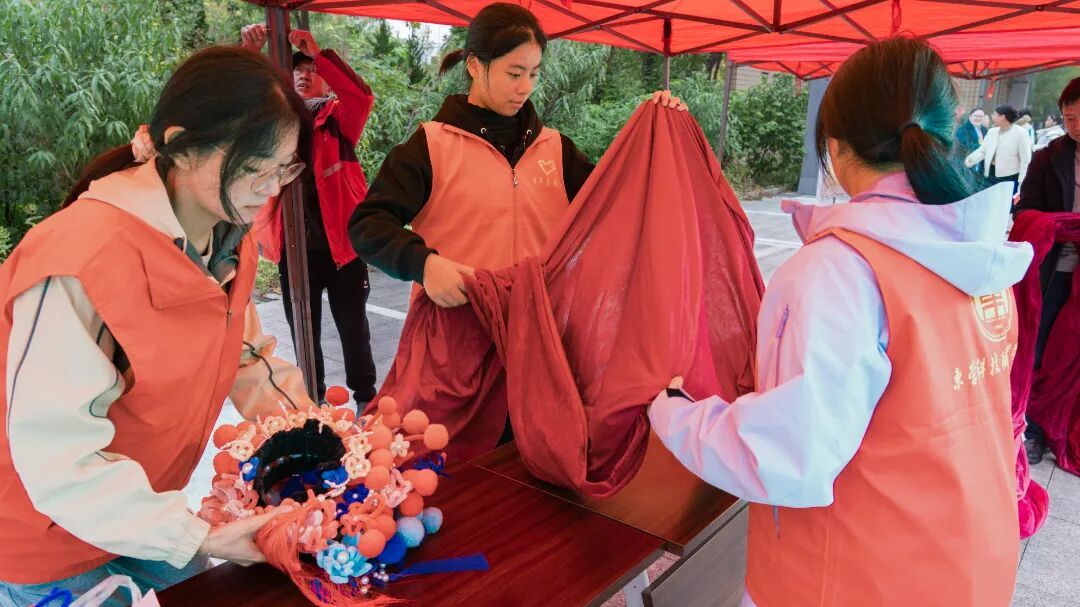活动当天,志愿者们提前抵达现场,迅速投入筹备工作。大家以“分工协作、高效执行”为原则,一部分志愿者合力搬运桌椅、搭建活动棚子,另一部分志愿者协助工作人员准备活动物品,将东科学子严谨务实的专业素养融入志愿服务的每一个环节。志愿者们又贴心护送行动不便的老人抵达活动现场,介绍活动内容,用耐心与热情赢得现场人员的一致称赞。