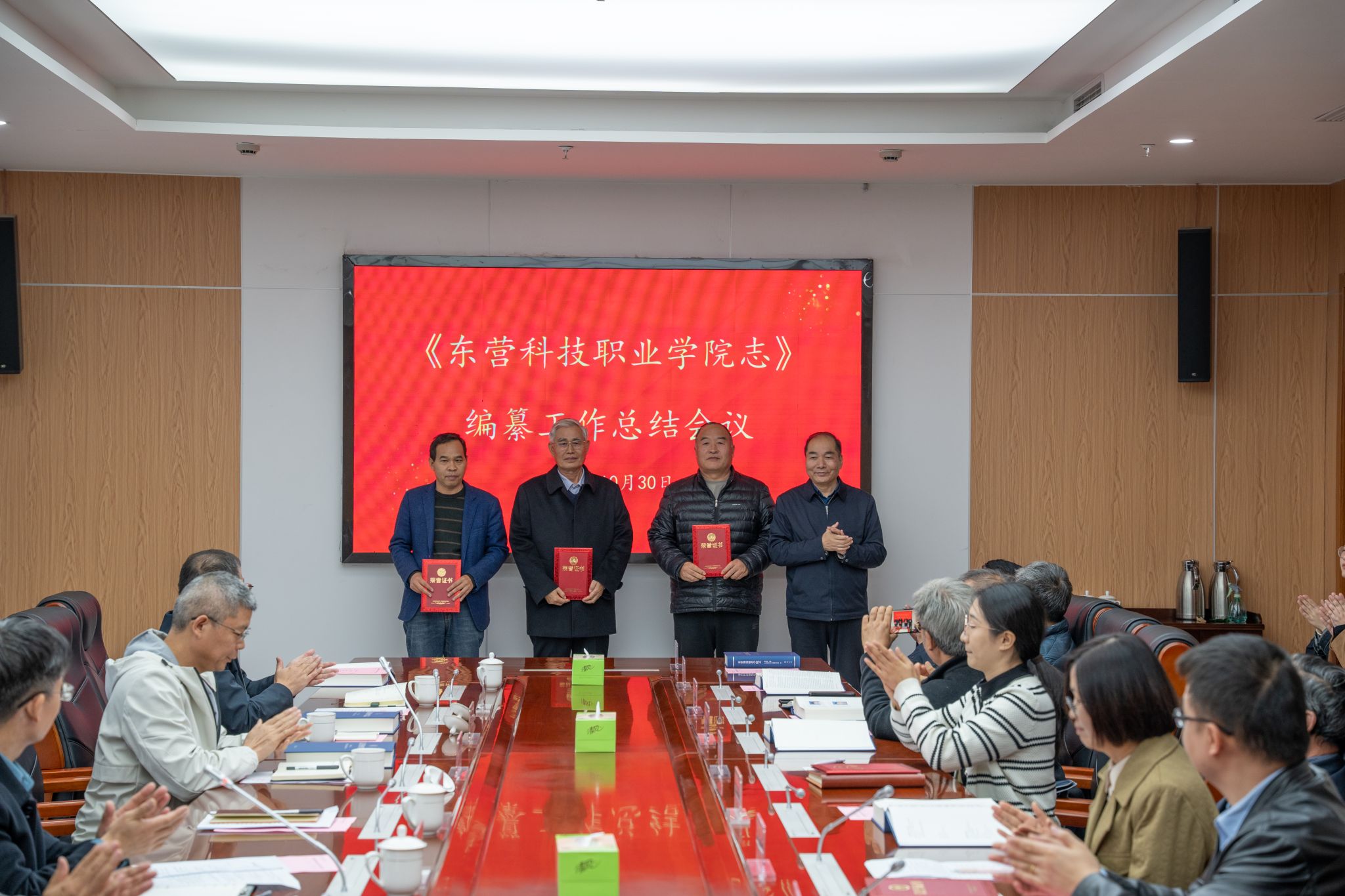 成永江向为校志编纂工作做出贡献的所有同志表示衷心感谢。他强调,《东营科技职业学院志》全面、客观、系统地记录了学校自创办以来的发展轨迹与办学成就,是学校文化建设的重要基石。他要求,全校上下要学好、用好这部校志,充分发挥其“存史、资政、育人”的重要功能,从中汲取奋进力量,继承和发扬学校的优良传统,并将编纂工作中展现出的严谨、求实、协作、奉献的精神融入日常工作中,不断开创学校事业发展新局面。
