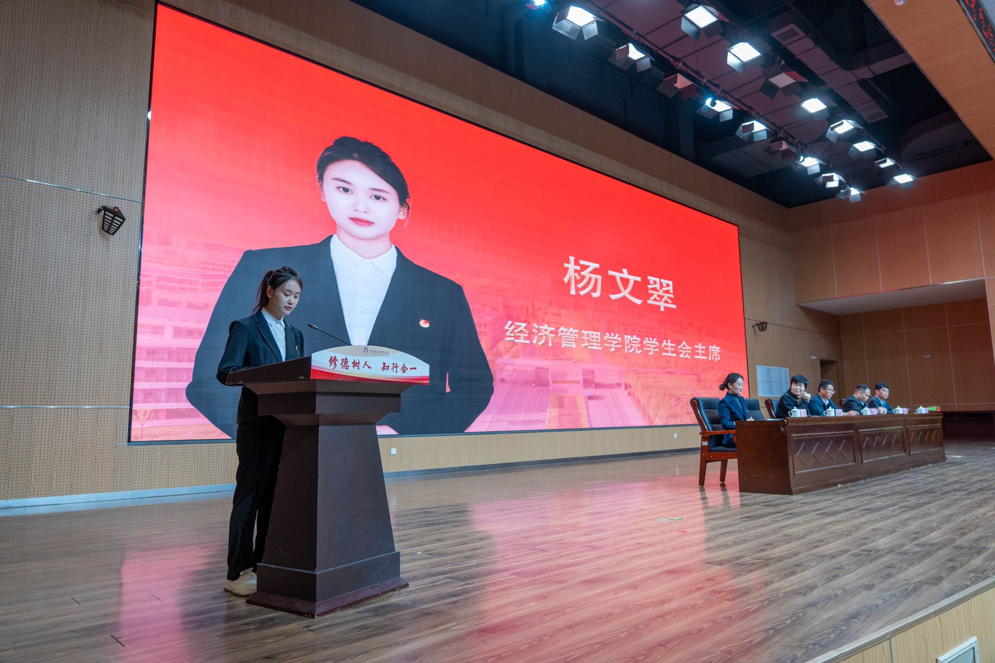 徐兴习代表学校党委向大会召开表示祝贺,肯定了上一届学生会在思想引领、权益维护、校园文化等方面的成效。他结合党的二十届四中全会精神与“十五五”规划展望,向全校学子提出三点希望:坚定理想信念,筑牢思想根基,深刻领悟“两个确立”的决定性意义,将个人理想与国家战略紧密结合;深耕专业技能,勇担时代使命,把专业所学转化为报国所能,努力成为适配地方产业链需求的高素质技术技能人才,为推进中国式现代化建设打下坚实基础;投身实践锻炼,实现全面发展,在实践中深刻理解国情民情,锤炼组织协调、沟通协作等综合能力。希望同学们以学代会为契机,在推进中国式现代化的壮阔征程中勇毅前行,书写无愧于时代的青春篇章。