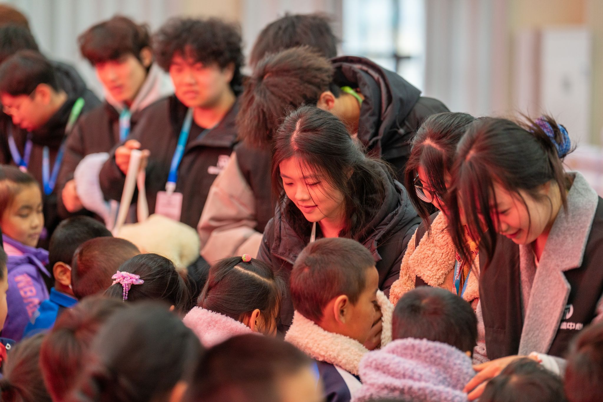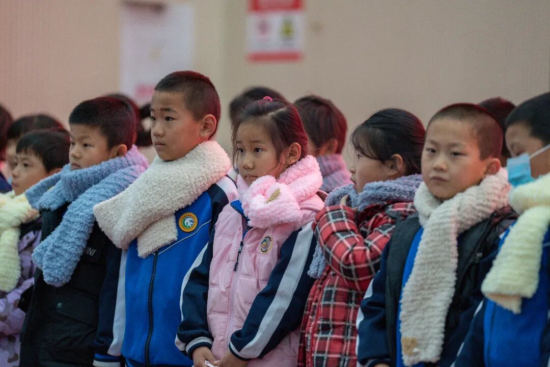 一箱箱精心准备的爱心物资整齐陈列,成为冬日校园里最动人的风景。志愿者们满怀热情,亲手为孩子们系上柔软温暖的围巾,耐心讲解手绘帆布包的设计理念,并将崭新的文具逐一送到孩子们的手中。志愿者们忙碌的身影与孩子们纯真的笑脸相互辉映,让所有的奔波与付出都有了最温暖的回应。