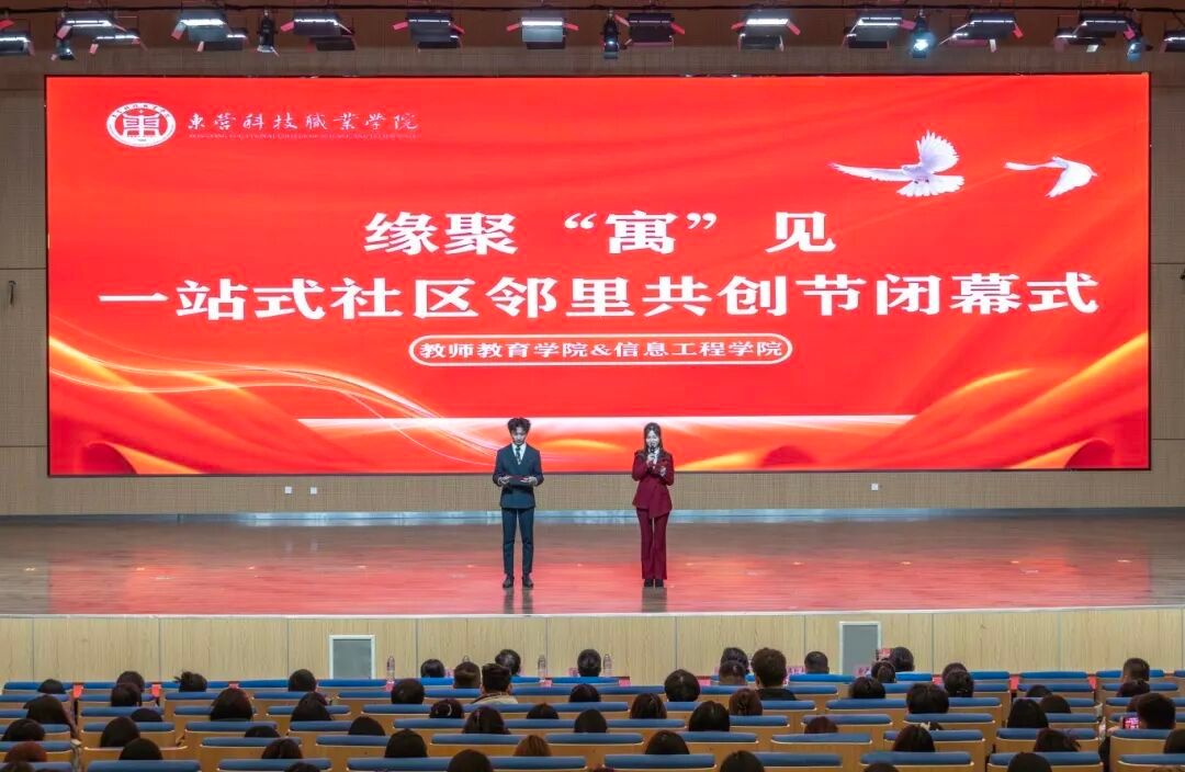 12月12日下午,信息工程学院与教师教育学院联合举办的“缘聚‘寓’见——一站式社区邻里共创节”闭幕式在行政楼报告厅顺利举行。党委委员、副校长徐兴习出席活动,团委相关负责人、两院领导、全体辅导员及学生代表共同参与。