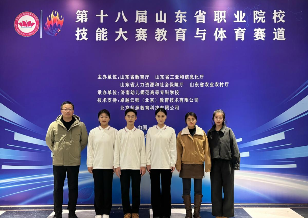 12月17日,第十八届山东省职业院校技能大赛高职组“教育与体育”赛道在济南幼儿师范高等专科学校圆满落下帷幕。本次赛事以“技炫青春 能创未来”为主题,全面对标职业教育改革发展方向及行业岗位核心需求,是检验全省高职院校相关专业人才培养质量的重要平台。来自全省各地市的51支代表队同台竞技、激烈角逐,由学院闫相伟、宋科秀教师联合指导,王积升、王佳雨、李梦绮三位同学组成的参赛战队,凭借“绿色启蒙,‘圾’时利用——幼儿环保主题活动”项目的扎实表现脱颖而出,成功斩获团体三等奖。