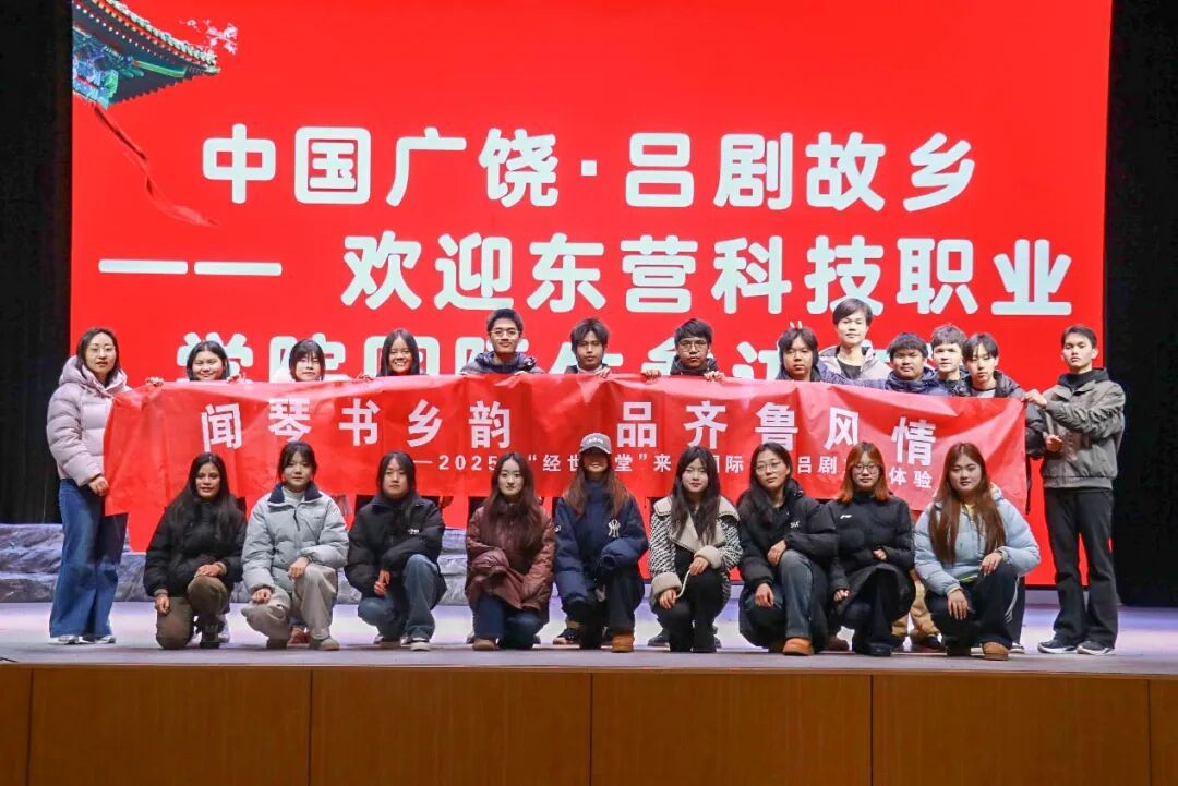 12月25日,学校来华国际学生与能源与建筑学院学生到广饶县吕剧艺术中心参加吕剧文化体验活动。在经典剧目观赏、传统身段学习、历史文脉探寻中,深度感受国家级非物质文化遗产——吕剧的独特魅力,共绘中外文化交流画卷。