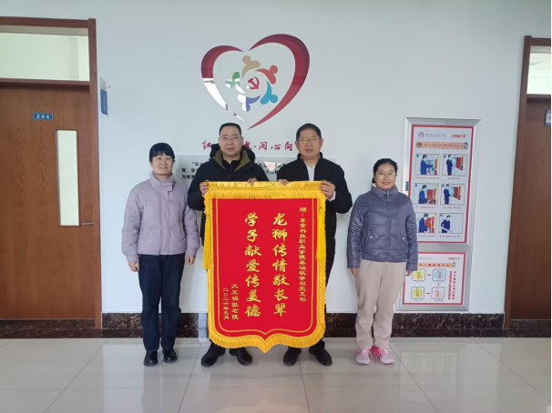 2月2日,大王镇敬老院负责人专程将一面镌刻着“龙狮传情敬长辈 学子献爱传美德”的锦旗,送到东营科技职业学院基础教学部党支部,以此致谢支部长期以来对敬老院工作的大力支持,以及对院内老年群体的悉心关怀,这也是支部“党建引领·四维融合·社团赋能”工作模式落地见效的生动体现。