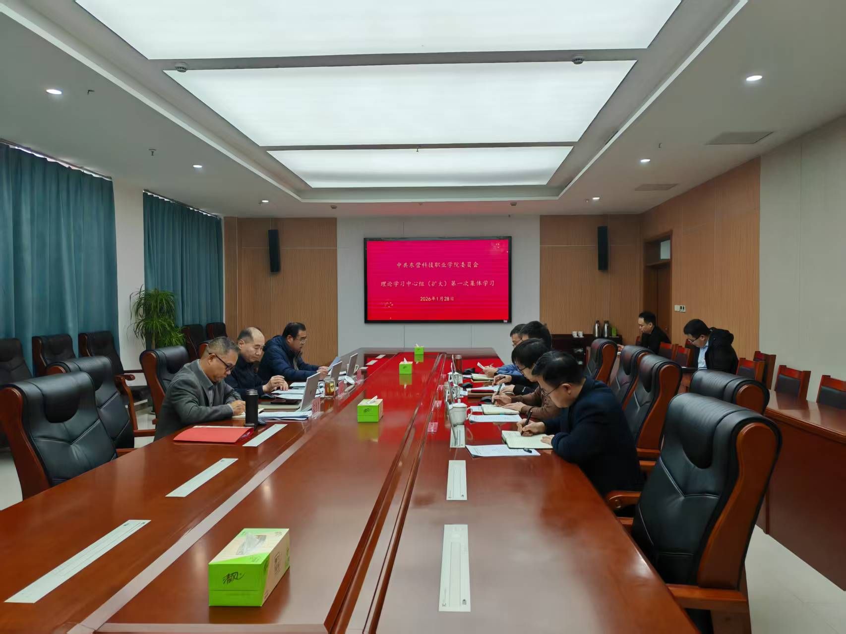 1月28日下午,学校党委理论学习中心组(扩大)围绕深入学习贯彻习近平新时代中国特色社会主义思想和党的二十届四中全会精神,锲而不舍落实中央八项规定精神,为实现“十五五”良好开局打牢思想基础为主题,举行2026年第一次集体学习。党委副书记、校长成永江主持集体学习,中心组成员参加集体学习。