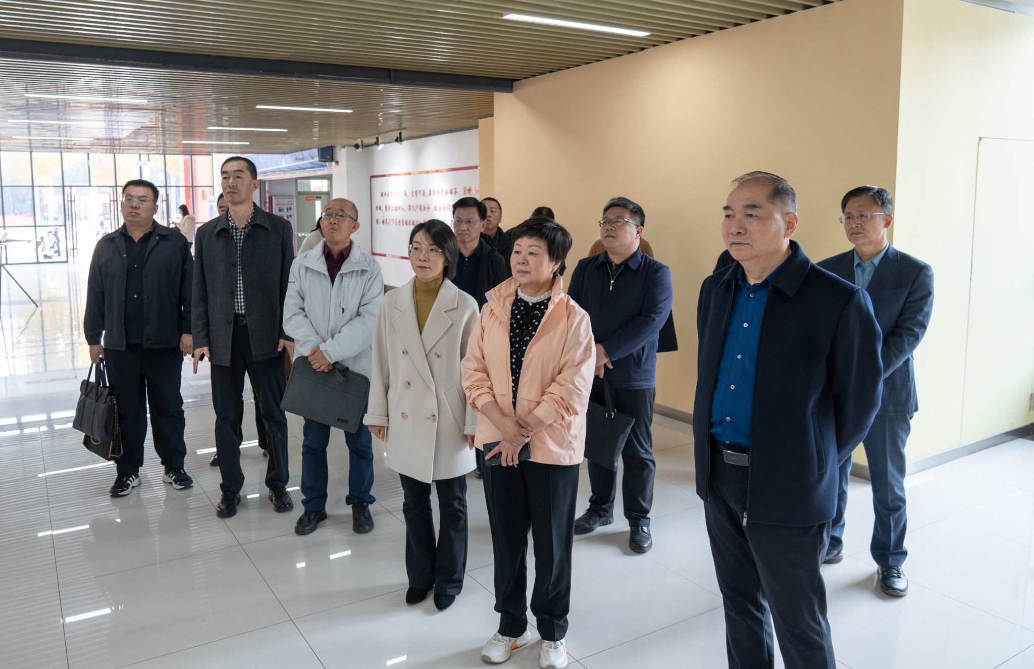 座谈会前,边丽娟一行参观了大学生创业中心、校园文化长廊、实训楼。