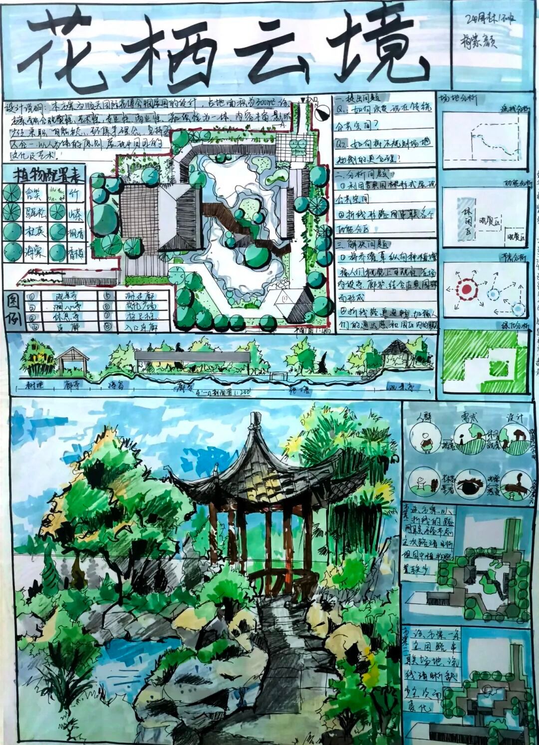 从前期草图的功能分区规划、道路系统搭建,到植物组团的搭配、尺度比例的拿捏,同学们反复打磨细节,将设计构想一步步落地为具象模型,每一处巧思都彰显着对专业的严谨态度。