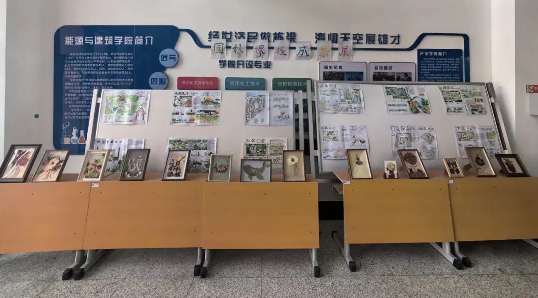 近日,我校能源与建筑学院园林技术专业课程成果展在4号教学楼大厅举行。本次展览集中展示了园林技术专业学生的课程学习成果,涵盖景观模型、快题设计及压花创作三大板块,实实在在展现出同学们扎实的专业功底和活跃的创新实践能力。